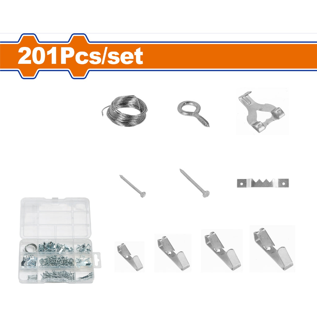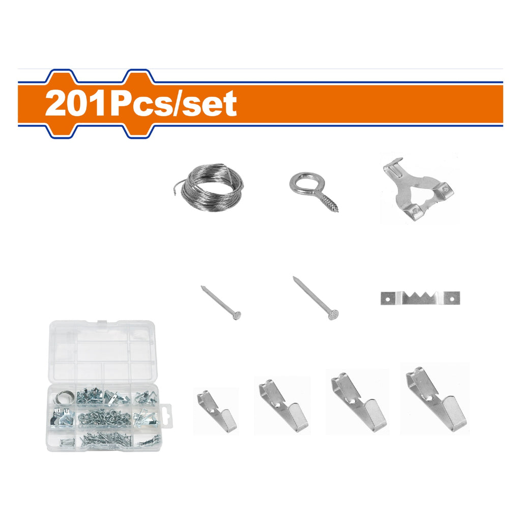 | Características | Colgadores de cuadros surtidos. 201 piezas. |