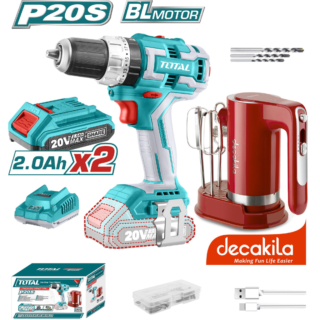 COMBO DEL MES Taladro de Impacto sin Escobillas y Batidora de Mano Inalámbrica (POCAS UNIDADES)