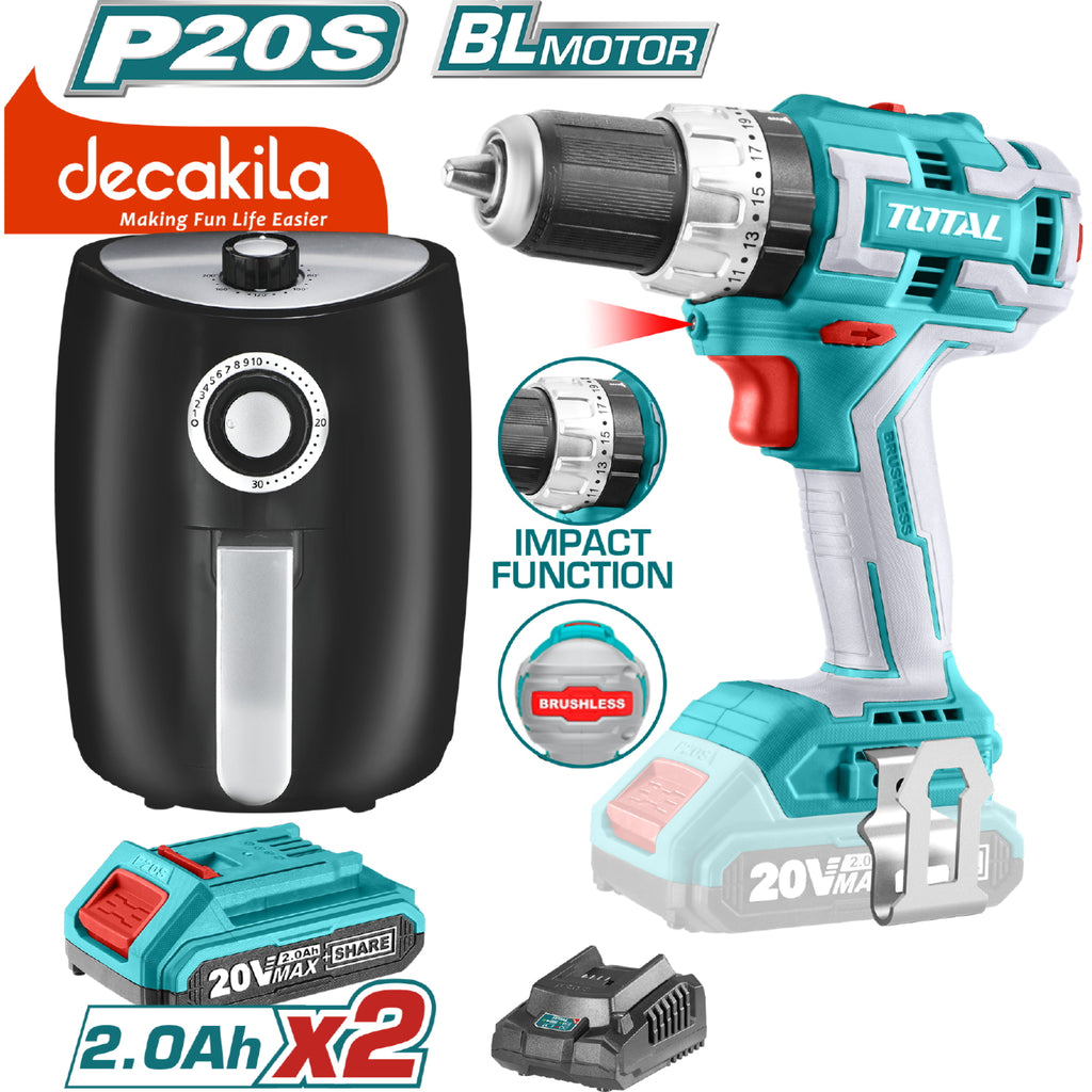 -1 Taladro de impacto sin escobillas de iones de litio Total(UTIDLI20608)