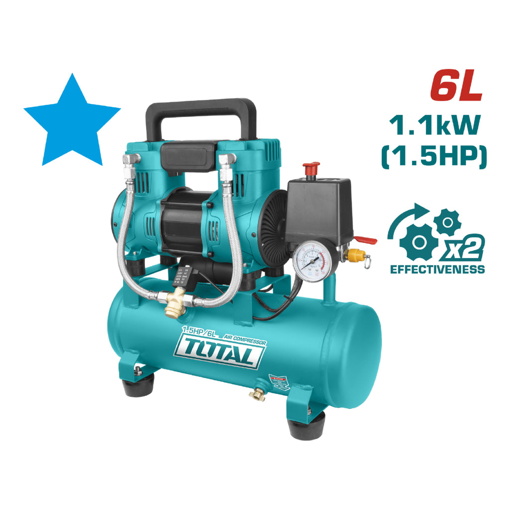 Compresor de Aire 6L (sin aceite) Potencia 1100W.