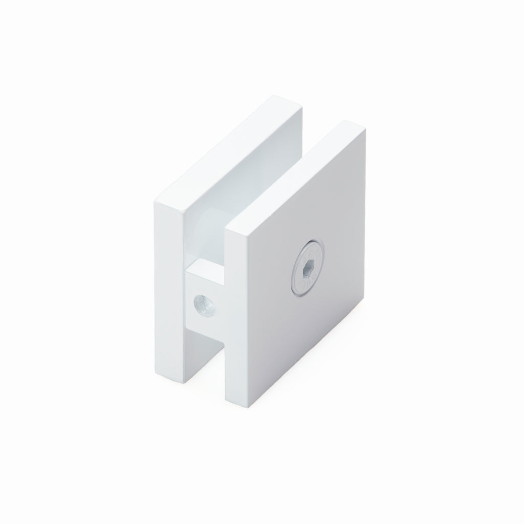 Conector Muro - Vidrio. Color Blanco. Material Aluminio. Funciona para Vidrio 8-10-12 mm.