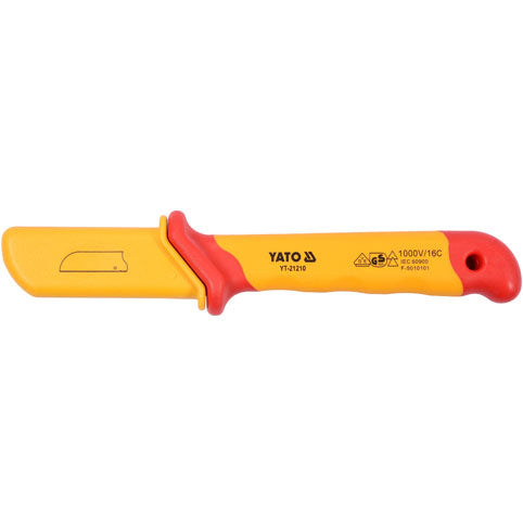 Yato Cuchillo Cortacables Aislado Vde, 250 Mm, 50 X 180 Mm, Material: 65 Mn, Resistencia Sometido A Carga Segun Estandar: Asme.B.107.15-2002, Color: Amarillo Con Rojo. Cuchillo Cortacables, Cuchillo De Electricista, Navaja De Electricista, Navaja Aisla