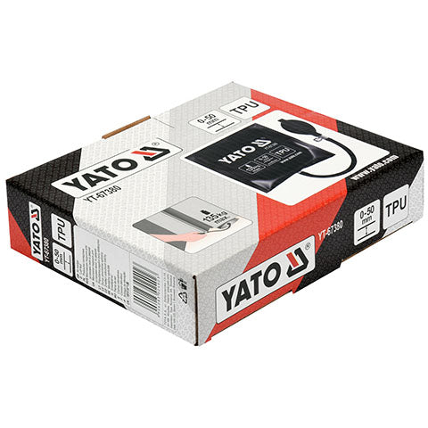 Yato Cuña Inflable, Carga Maxima De Hasta 135 Kg, Espesor Minimo, 1.3 Mm, Max. 50 Mm, Dimensiones: 150*160 Mm; Material: Bolsa: Tpu (Con Triple Costura), Bomba: Latex. Bomba De Aire Con Cuña, Cuña De Aire