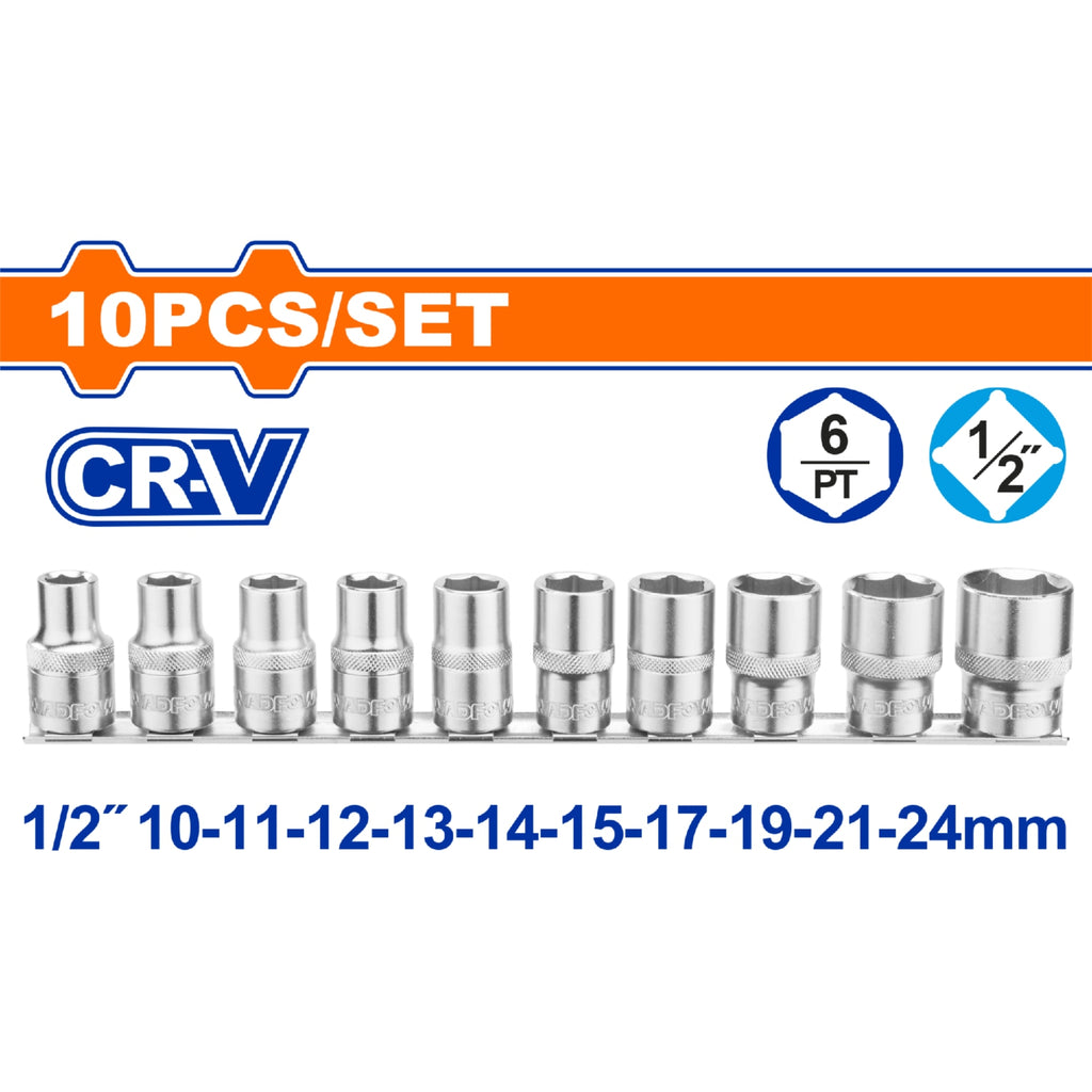 -10 dados socket de 1/2'''': 10, 11, 12, 13, 14, 15, 17, 19, 21, 24mm