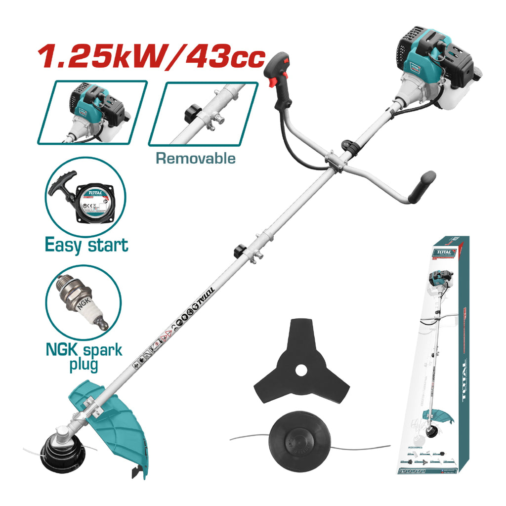 Desmalezadora grande. Motor 2 tiempos enfriado por aire a gasolina 1.27KW (2HP) 42.7cc. Dos funciones para hierba y arbustos.