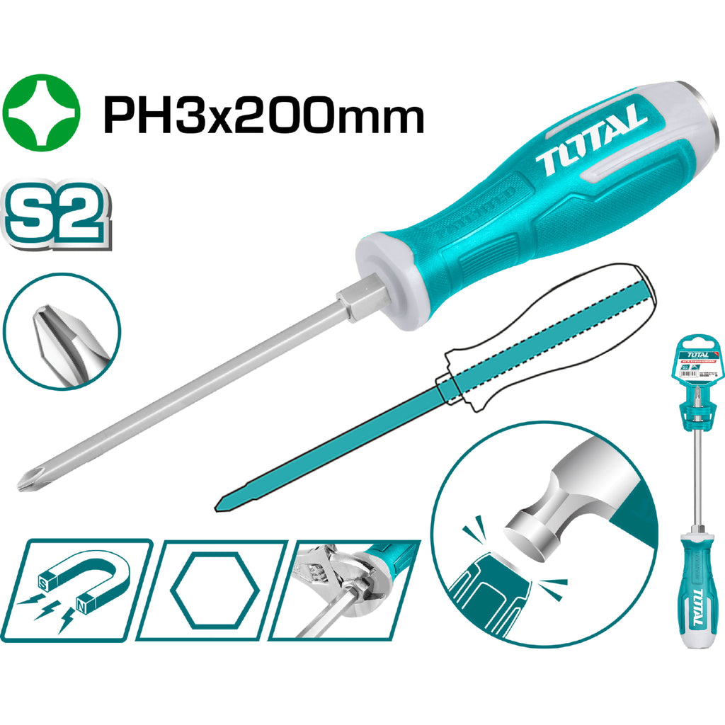 Destornillador Pasante Phillips 3X200mm Material De La Hoja: S2 Tipo De Punta: Phillips. Magnético.