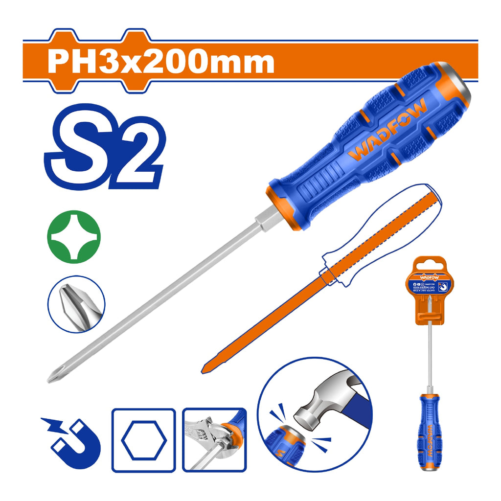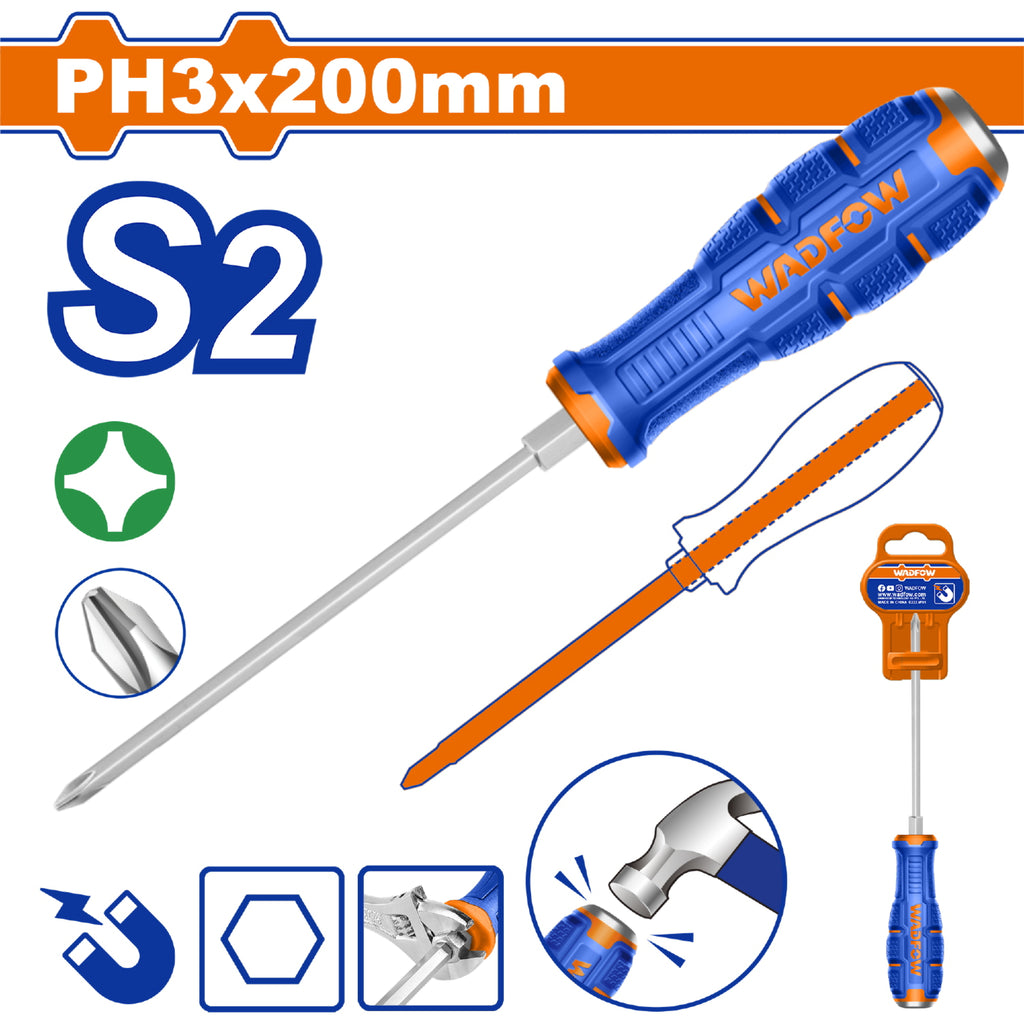 | Características | Tipo de punta: Phillips PH3 Magnético Longitud de la hoja: 200mm Diámetro de la hoja: 8.0mm Tipo de vástago: hexagonal |