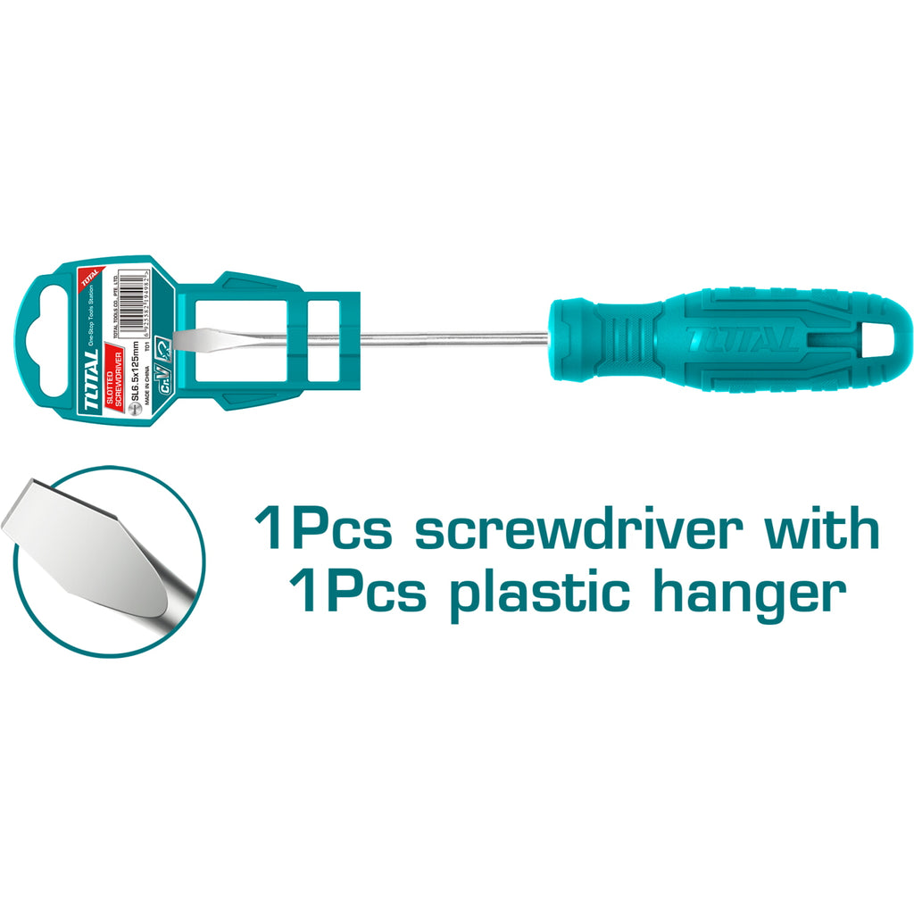 Destornillador Plano 40 Cr, Mango Redondo. Ranura: 6 Mm. Diámetro: 6 Mm. Longitud: 125 Mm