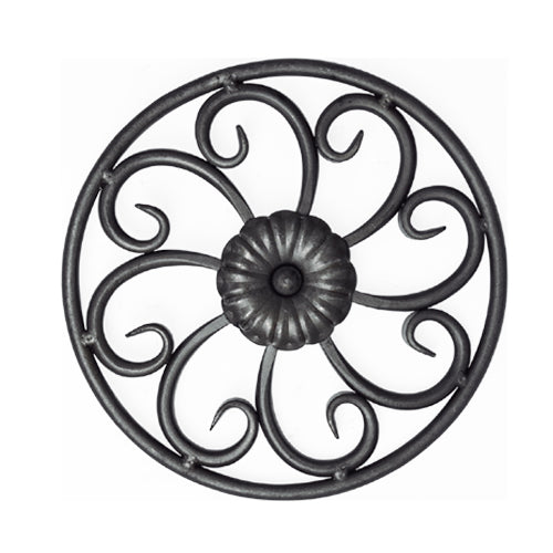 Rosón artístico de hierro forjado Diámetro Ø 295 mm; Barra redonda Ø 12 mm; Para el fácil diseño de balcones, escaleras, puertas o portones proporciona un toque artístico. 100% soldable.