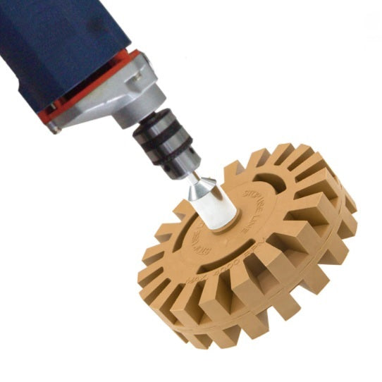 Disco de caucho para eliminar vinyl de superficies, adaptable a taladros.
