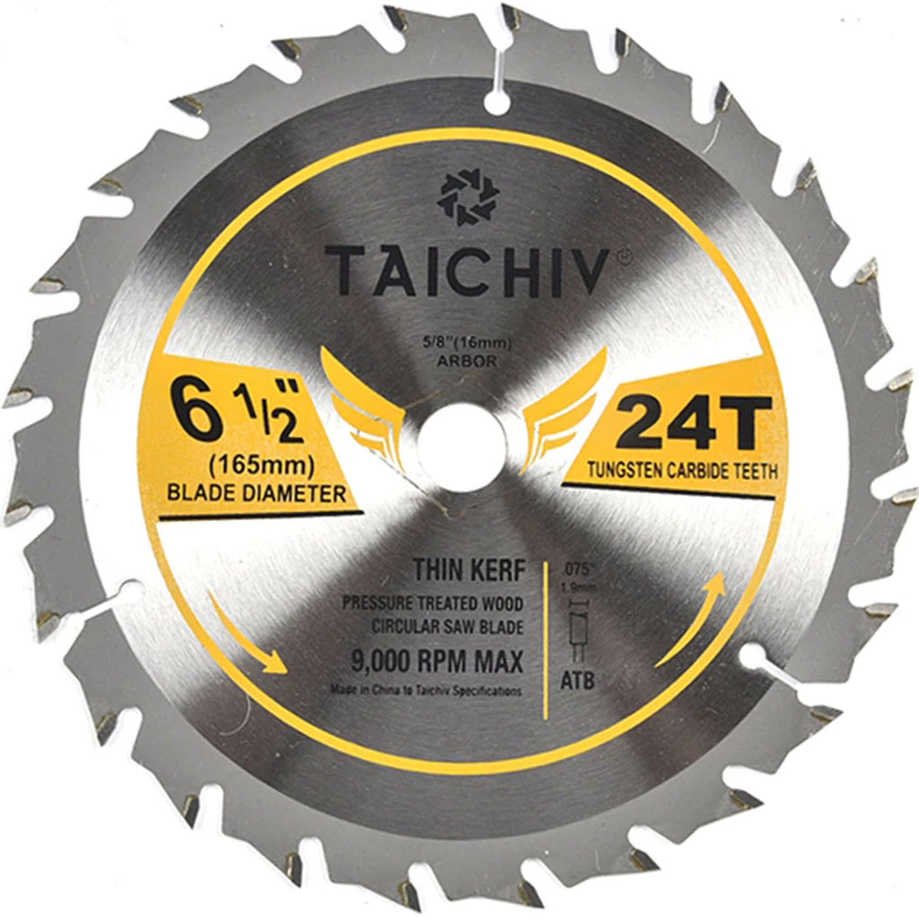 Disco de Sierra de 6 1/2'' ( 165 mm ) de 24 dientes de 9000 RPM para Madera. Material Carburo Tungsteno (TCT).