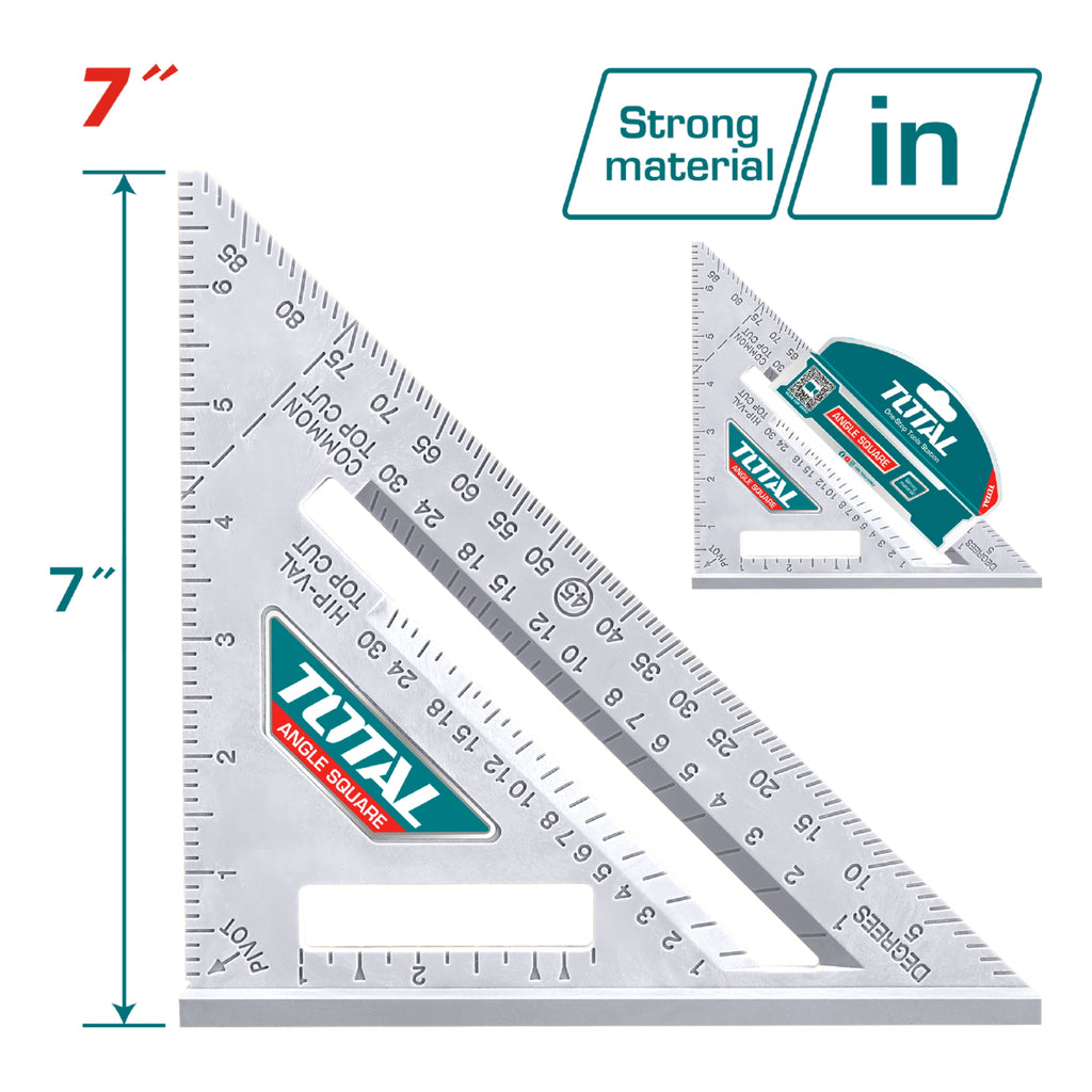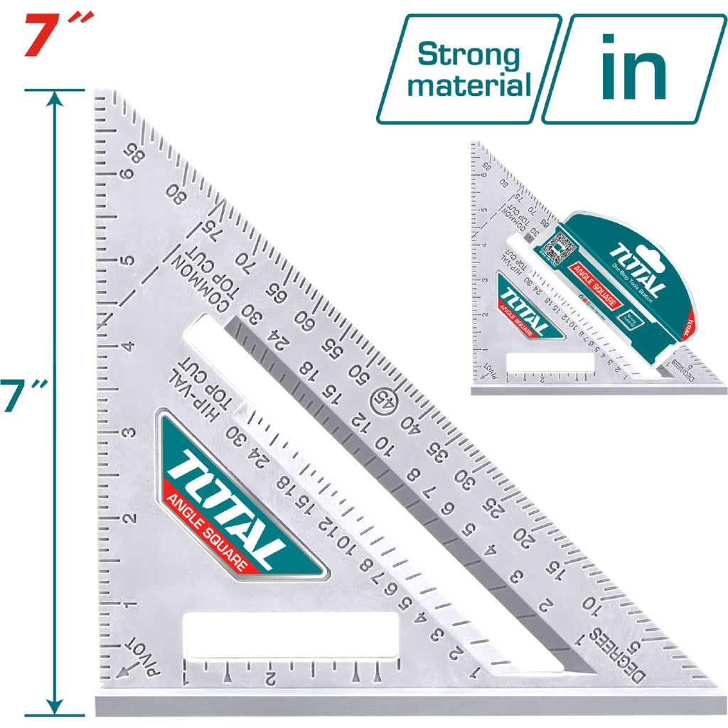 Escuadra Angular de ABS (Liviana y de alto impacto) 7” * 7”. Solo Pulgadas, Borde biselado y graduaciones para una lectura precisa, Punto de marcado para lápiz y corte fácil de usar. Presentación: Etiqueta.