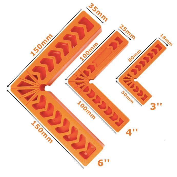 Esquinas perfectas de 90 °, muy fácil crear ángulos rectos en madera. Se puede sujetar en la esquina interior o exterior de tu pieza de trabajo, lo que lo convierte en un cuadrado de sujeción muy versátil para cualquier proyecto.