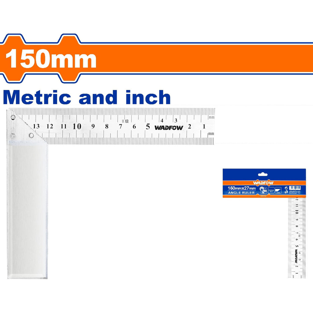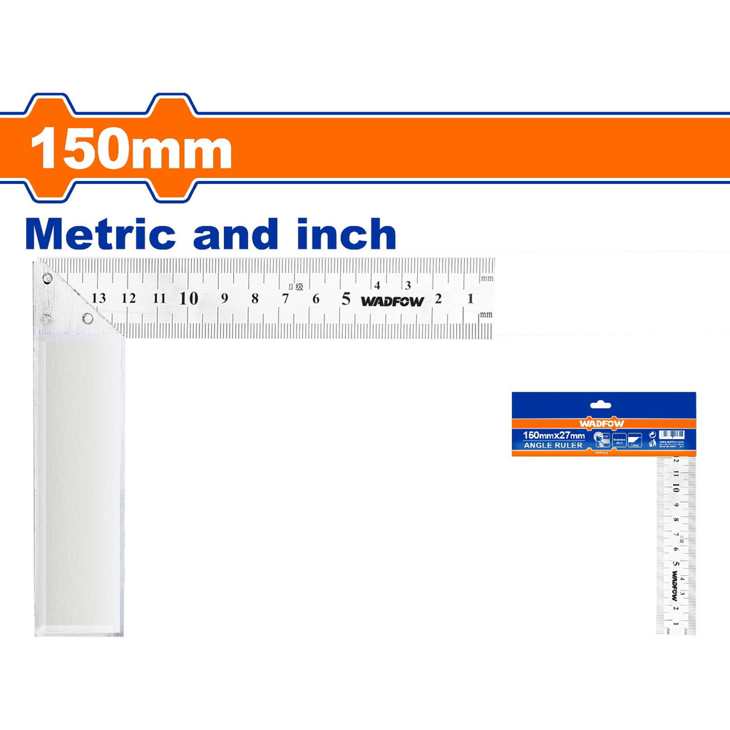 -Marco de acero inoxidable en forma de L. Mide metros y pulgadas.