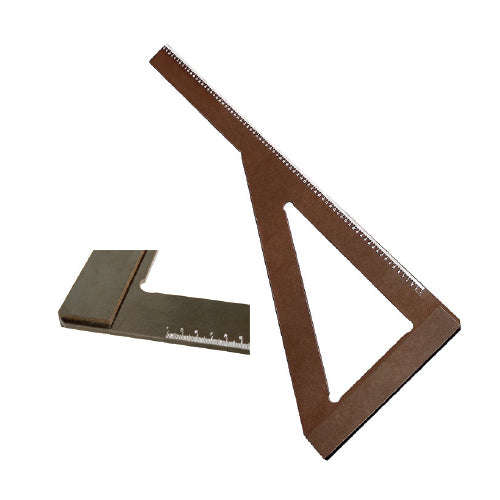 Escuadra L con brazo y divisiones métricas, fabricada en material fenólico duro. Hecho de una sola pieza sin uniones, cuerpo rígido y fuerte. Asegura rectitud precisa y el ángulo recto. Grosor del brazo largo 4 mm, 12 mm en el tope. División métrica impresa.