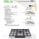 Cuenta con un diseño tradicional, la Estufa a Gas van desde lo más sencillo y clásico, hasta lo más lujoso y elegante, poseen encendido eléctrico y son fabricadas en Acero Inoxidable SS304 y en Vidrio Templado negro, ambos materiales altamente resistentes al calor y también le otorgan un diseño único y que destaca en el mercado.