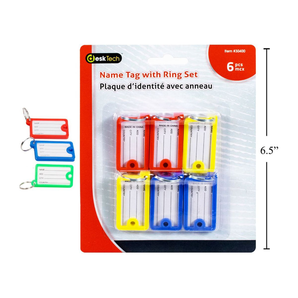 Etiqueta de llaves de nombre de Desk Tech con juego de anillos, juego de 6 piezas