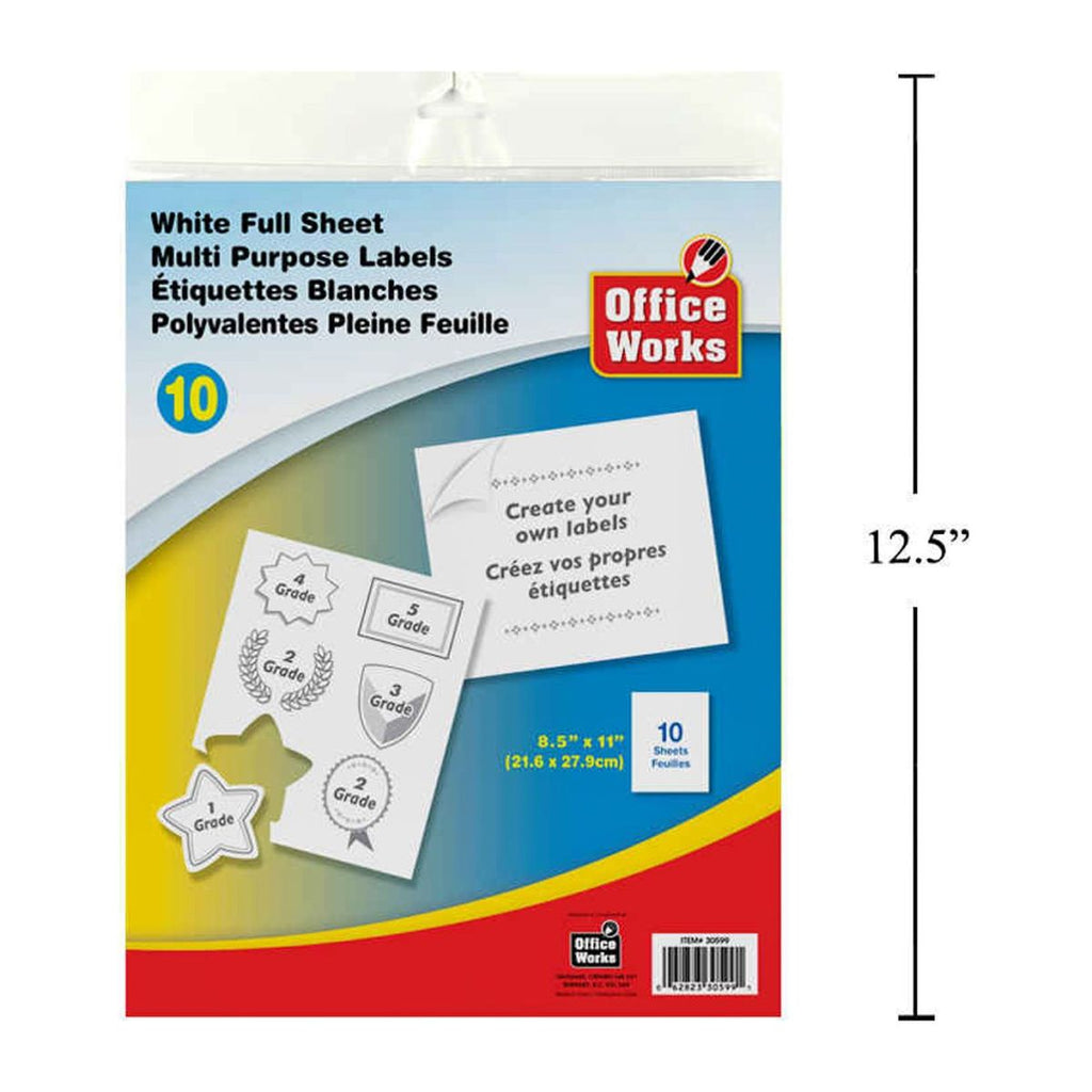 Etiquetas de hoja completa de 10 piezas, 8.5 ''x11'', multipropósito