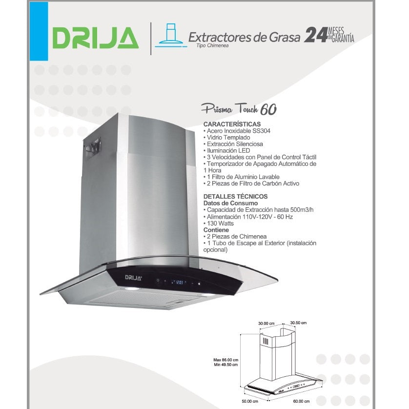Su extracción es silenciosa, cuentan con 3 velocidades de extracción y un Panel de Control Táctil, sumado a ello un Temporizador de Apagado Automático que te ayudará a ahorrar energía en tu hogar.