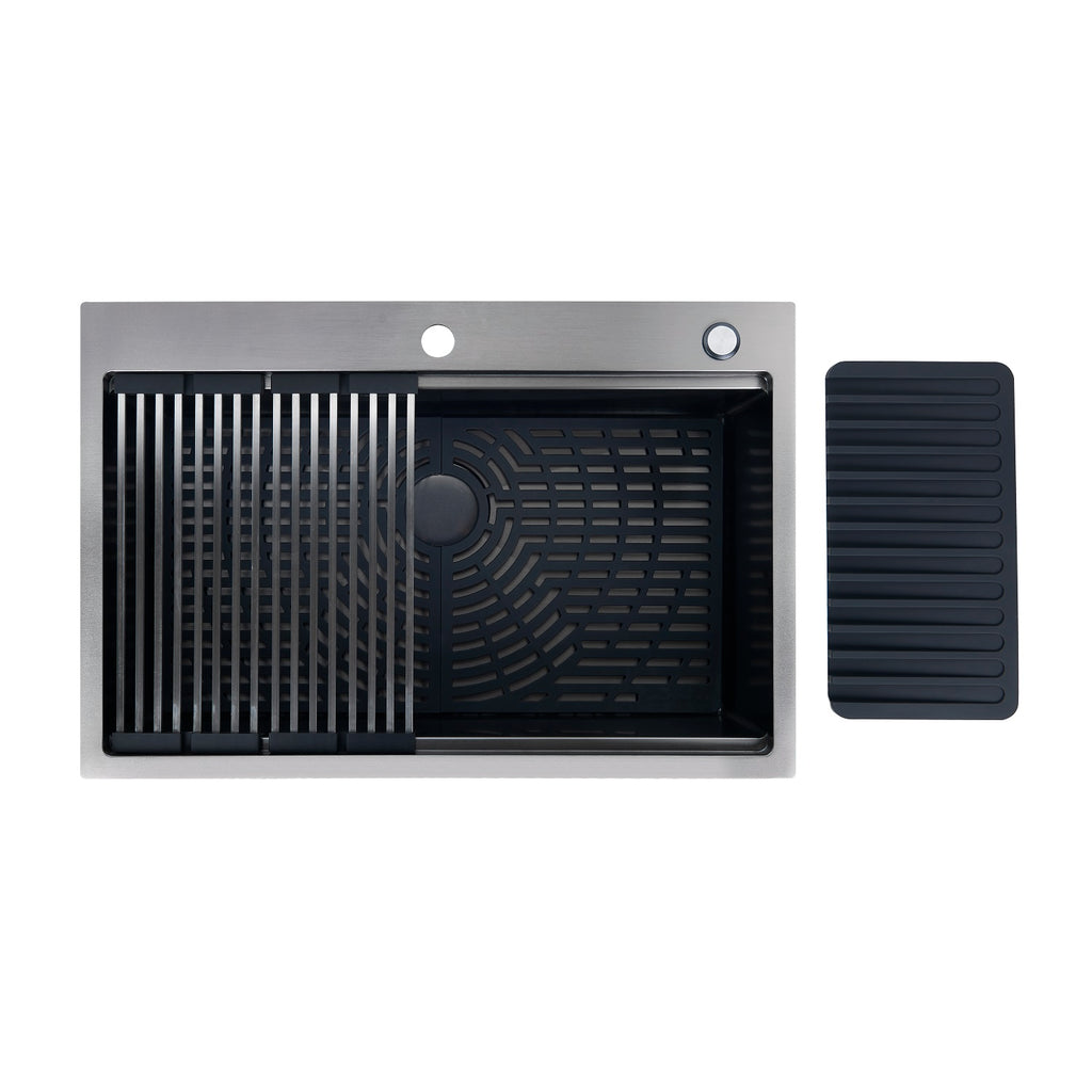 - Incluye: escurridor multiusos, escurre copas, drenajes tipo canasta, rejilla de silicón inferior y plantilla de instalación.