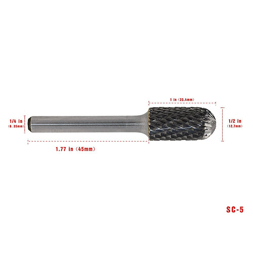 YUFU fresa cilindrica redondeada para motor tool de carburo de tungsteno (1/2'' Diametro X 1'' largo) vastago 1/4 (1 pza)