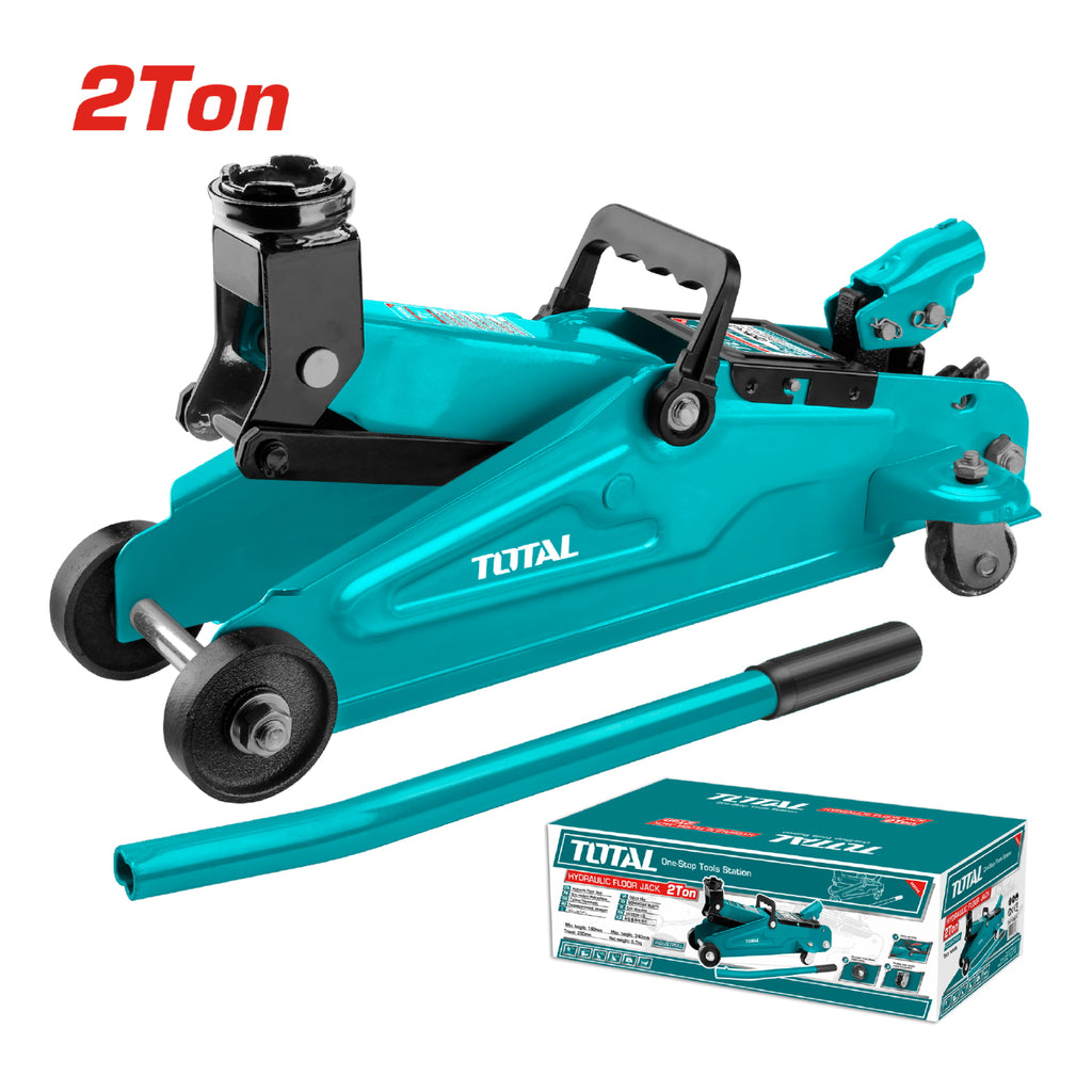 Gato hidraulico de piso 2Ton con patines. Altura 140mm/340mm. Desplazamiento 200 mm. 8.7 kg