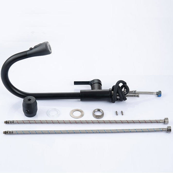 Grifo Para Fregador De Cocina Con Manguera Extraíble, Color Negro.