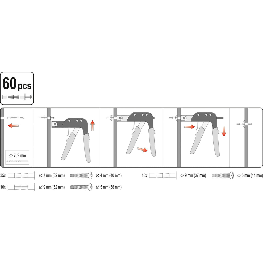 Herramienta fijación tacos de expansión para paredes huecas como gypsum+60 tacos