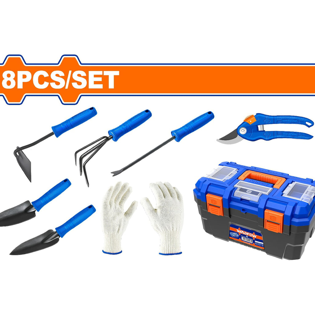 Herramientas De Jardinería 8 Piezas. (Guantes, Rastrillo, Azada, Desmalezadora) (Juego)