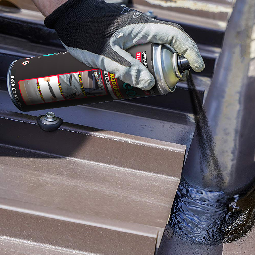 iSEAL Negro sellador bituminoso asfaltico en spray 500ml. Permanece flexible en el tiempo. Sellado definitivo para sus problemas de filtraciones y goteras, usar preferiblemente en libre humedad y polvo, para mejores resultados. Se recomienda usar a 30 cm de la superficie a aplicar.
