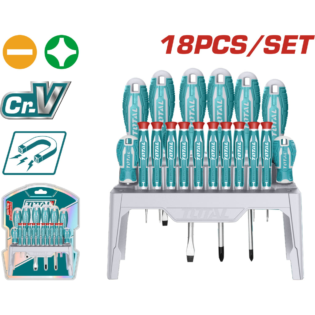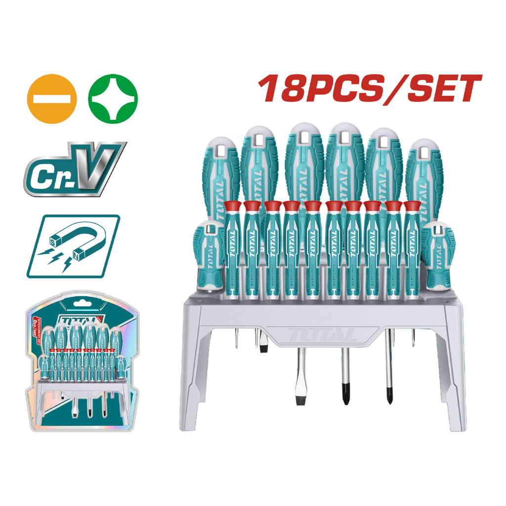 Juego de 18 piezas de destornilladores regulares y de precisión.