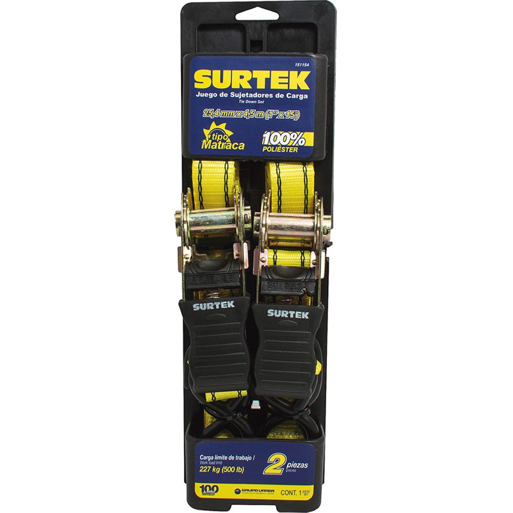 -Juego de 2 sujetadores y tensores tipo matraca 4.5m Surtek