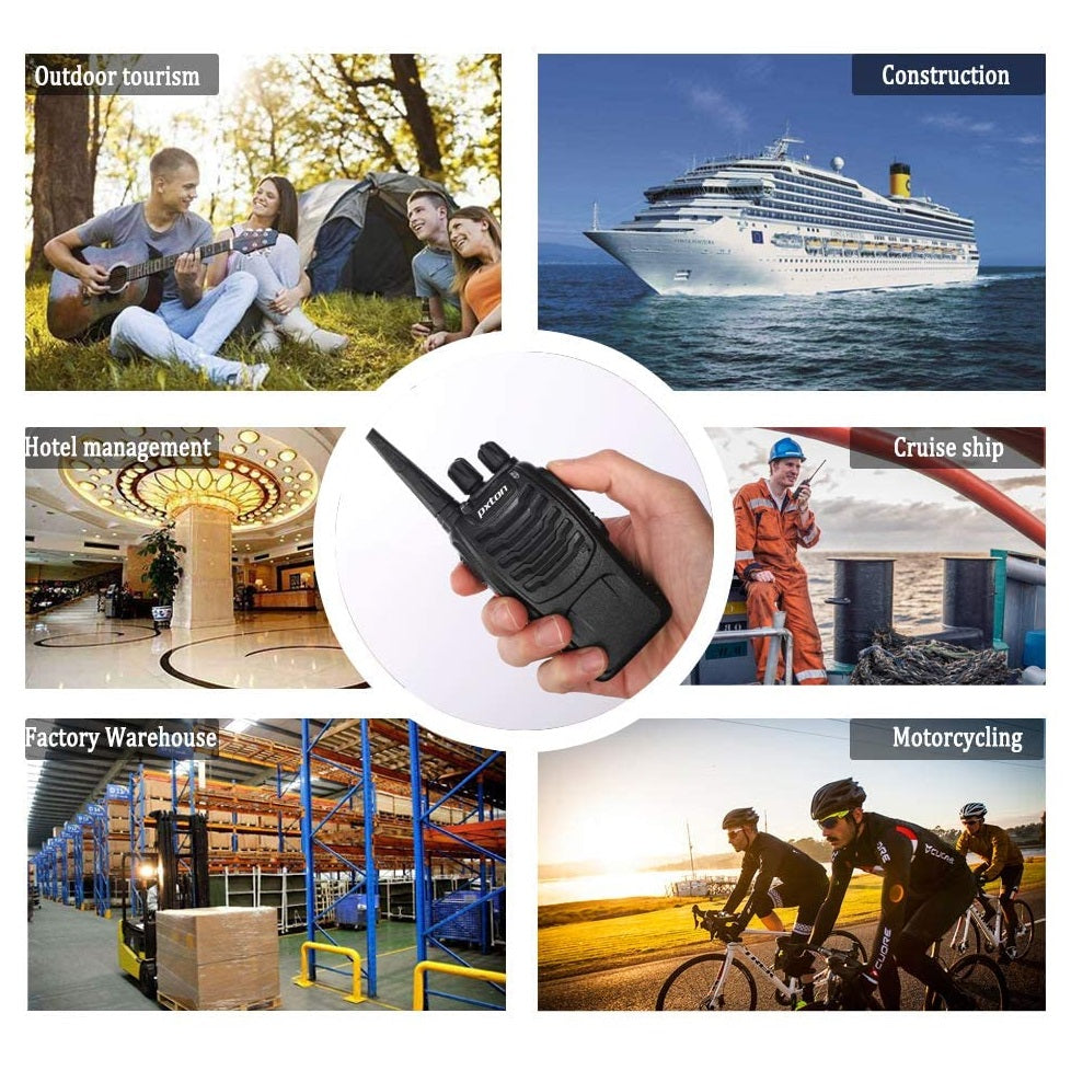Este transmisor de radio de mano de dos vías es adecuado para gestión de hotel, villas, cocinas de restaurantes, salidas, escalada de montaña al aire libre, sitios de construcción, almacenes de fábrica, conducción de coche, cruceros, escuela, iglesias, tiendas minoristas y supermercados, personal de seguridad, personal de construcción, personal de mantenimiento de seguridad.
