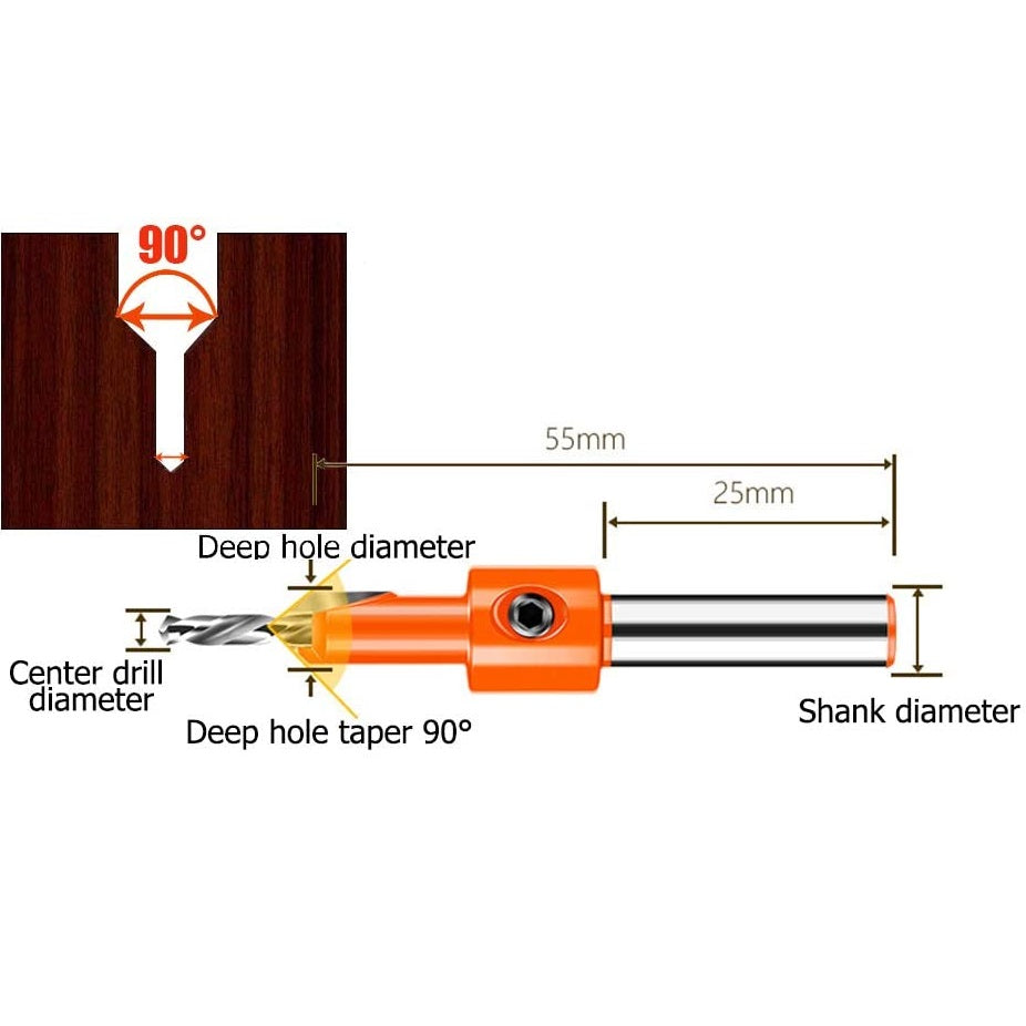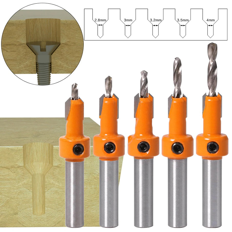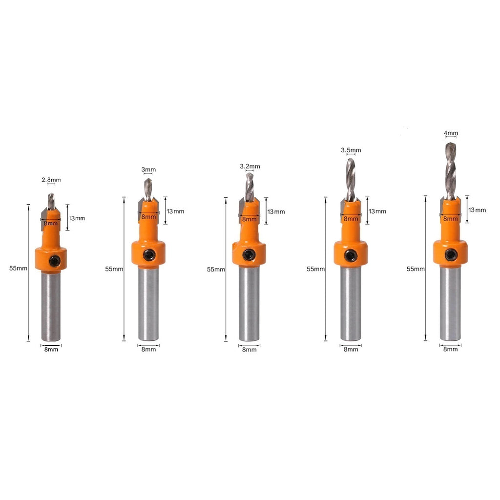 Set de 5 piezas de brocas HSS para avellanar para taladros. Vástago de 8mm. Duradero y resistente a la corrosión, fuerte capacidad de perforación y resistencia al desgaste.