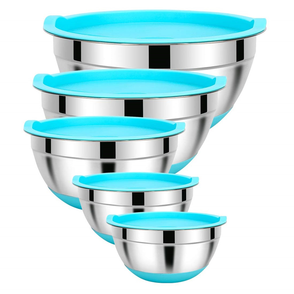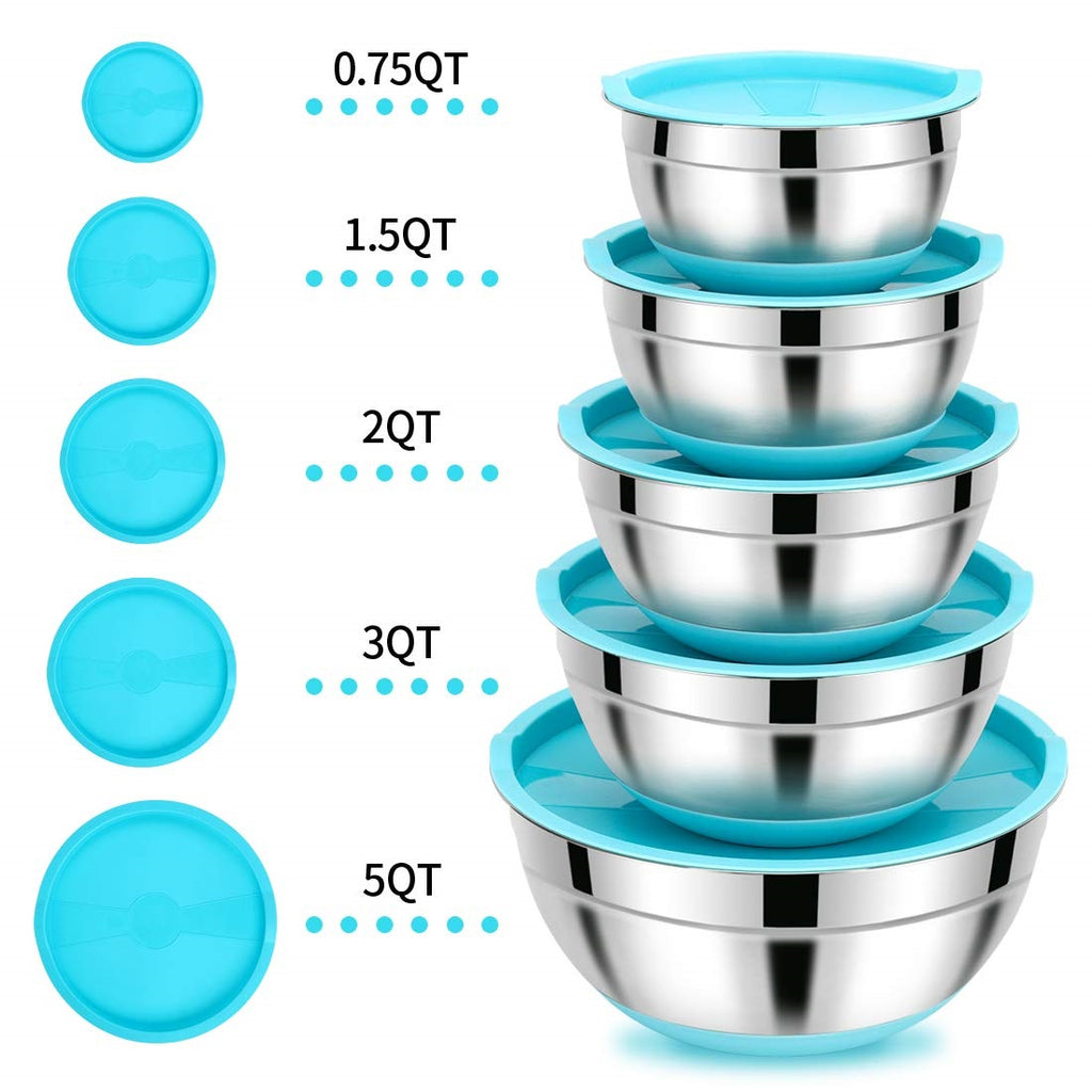 5 tazones más 5 tapas incluidas para hacer un juego de 10 piezas.