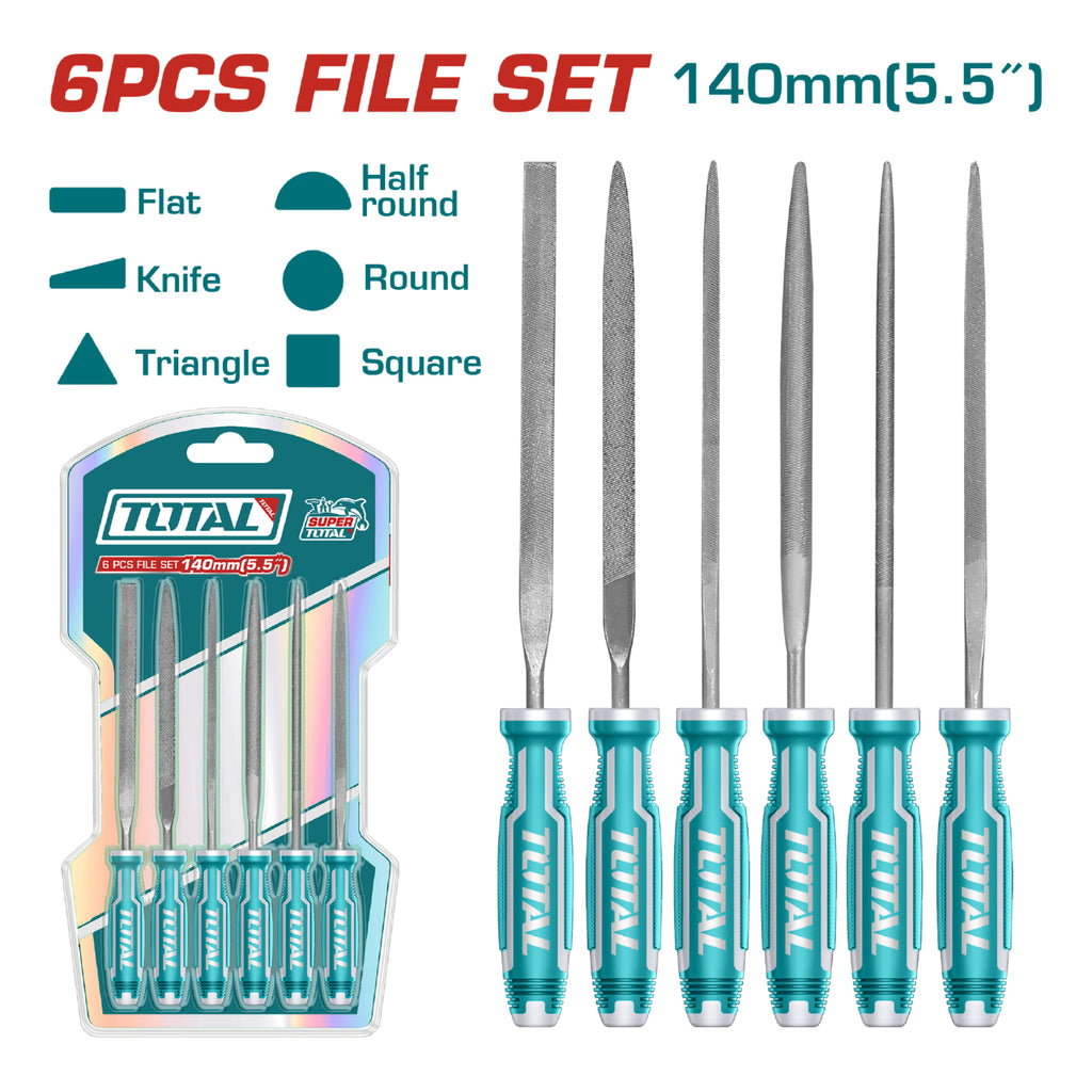 Juego de 6 limas delgadas 140x3 mm plana, redonda, media caña cuadrada triangular y conica