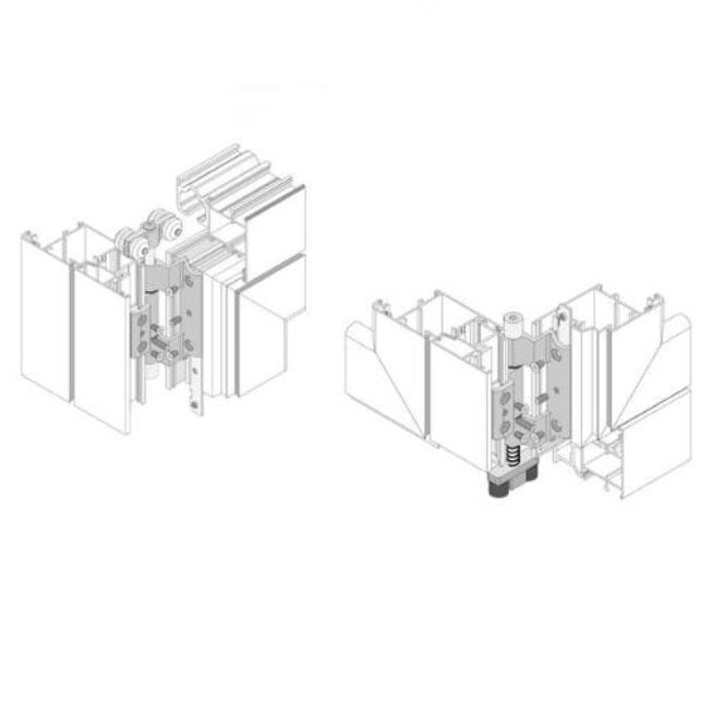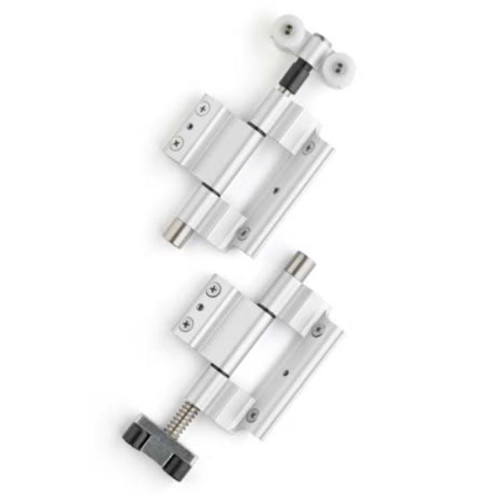 Juego de Bisagra / Rueda Superior / Guia Inferior Central. Sistema Plegable Europa. Color Blanco. Bisagras de 3 cuerpos con Tornillo Inoxidable.