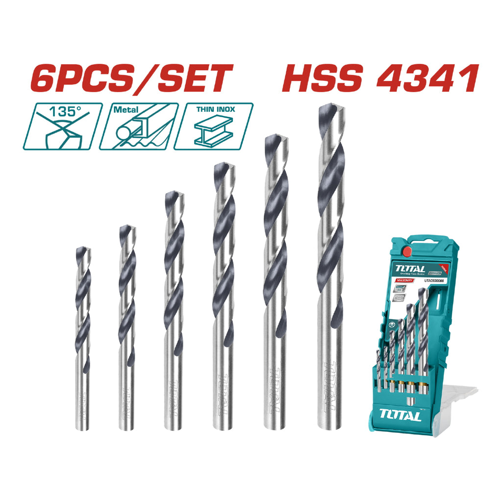 Juego de Brocas Helicoidales HHS. 6 pzas - Tamaños: 5/64'',7/64'', 5/32'',3/16'',7/32'',5/16''.