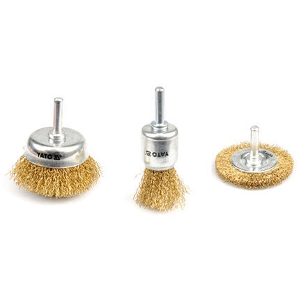 Yato Juego De Cepillos De Laton De 3 Piezas, Cepillo Circular, Diametro: 50 Mm, Vastago: 6 Mm, Alambre De Laton Ondulado, Cepillo De Copa, Diametro: 50 Mm/25 Mm, Vastago: 6 Mm, Alambre De Laton Ondulado. Cepillos De Alambre, Cepillos De Laton, Juego De