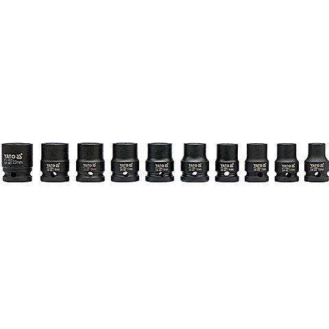 Yato Juego De Dados De Impacto (1/2''). 10 Piezas: 10, 12, 13, 14, 15, 16, 17, 18, 19, 22 Mm; Material: Crmo Scm-440 Con Acabado Negro Fosfatado Juego De Dados De Impacto, Juego De Dados, Dados De Impacto