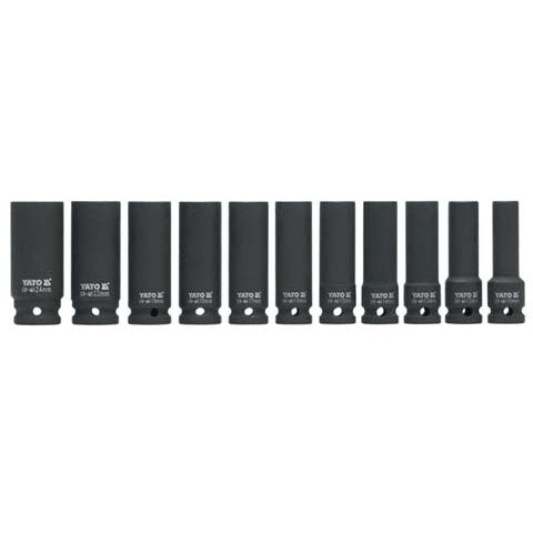 Yato Juego De Dados De Impacto Largo (1/2''). 11 Piezas: 10, 12, 13, 14, 15, 16, 17, 18, 19, 22, 24 Mm; Material: Crmo Scm-440 Con Acabado Negro Fosfatado Juego De Dados De Impacto Largo, Dados De Impacto Largo, Dados De Impacto