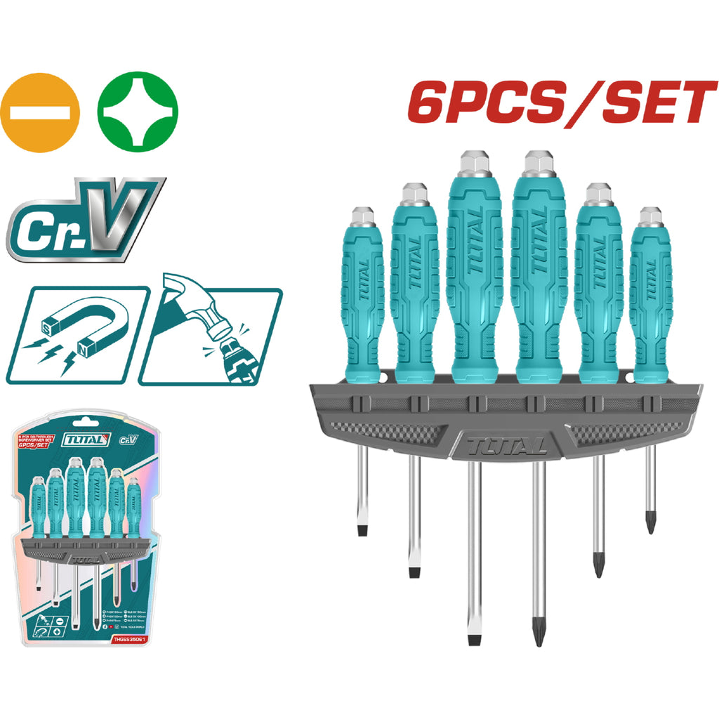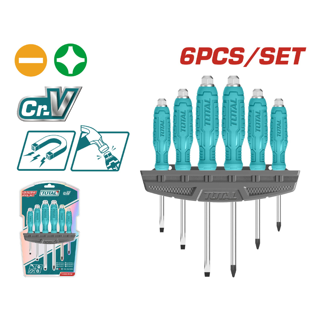 Juego de destornilladores de 6 piezas. Plano y Estrella. 40 Cr.