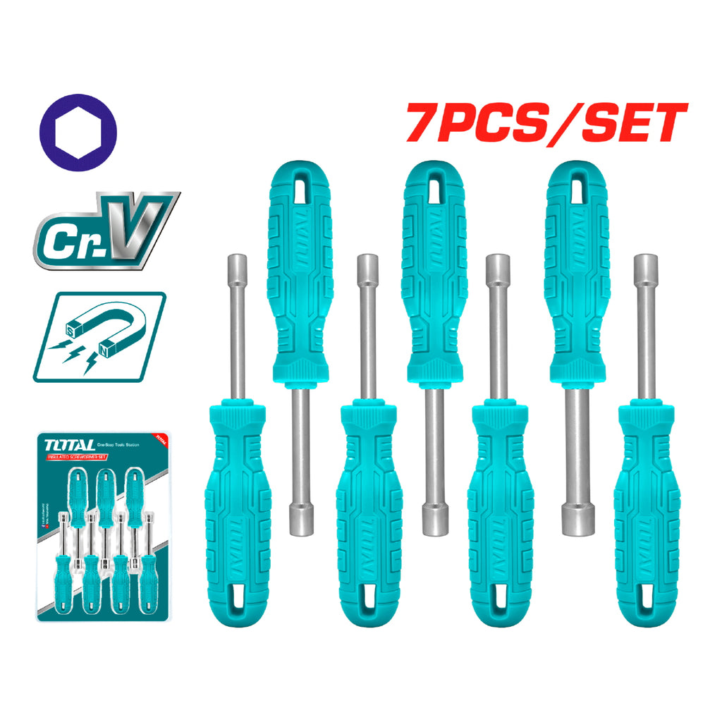 Juego de destornilladores de tuerca de 7 piezas. Con Mango ergonomico. Longitud: 175mm. Tamaños: 6 mm, 7 mm, 8 mm, 9 mm, 10 mm, 11 mm, 12 mm.