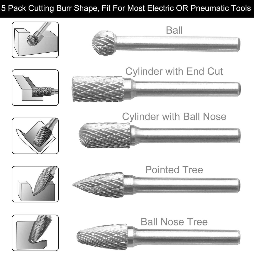 Juego De Fresas De Motortool 5Pcs 8MM Head Tungsten Carbide 1/4-Inch Shank Cutter