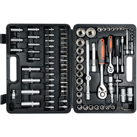 Juego de herramientas de alta calidad fabricado en acero al carbono para exigentes aficionados al bricolaje. Gracias a la aplicación de un sistema especial AS-DRIVE, permite realizar trabajos que requieren cargas muy elevadas y precisión. El set incluye 94 herramientas variadas.