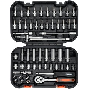 Sthor Juego De Herramientas (1/4'', 56 Piezas). Todos Los Dados: 6 Puntas, Material: Acero Al Carbono, 2 Tonos Con Moleteado En Torno, Regular (1/4''), Din 3121, Sistema As-Drive, Longitud: 25 Mm, 12 Piezas (4 Mm, 4.5 Mm, 5 Mm, 5.5 Mm, 6 Mm, 7 Mm, 8 Mm,