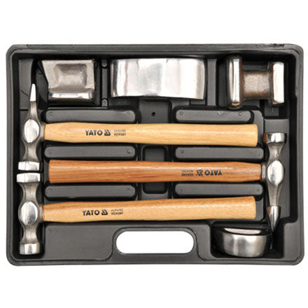 Yato Juego De Herramientas Para Chapisteria, Forjadas, Pulidas, Mango De Madera Nogal Americano. Martillos Y Dollies, Martillos De Chapisteria, Martillo Sacagolpes