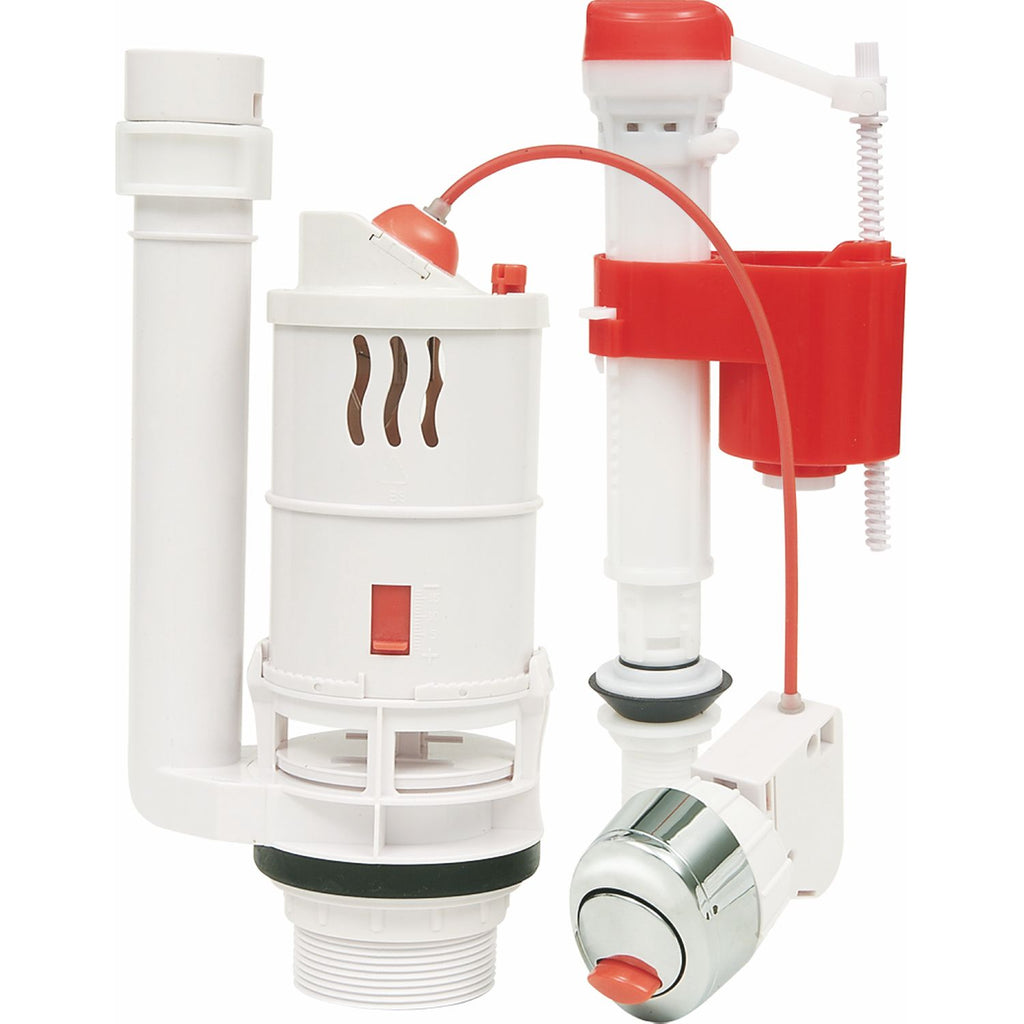 Kit incluye válvula de llenado y descarga para W.C. o Sanitario con sistema DUAL de 2”, así como su botón lateral
