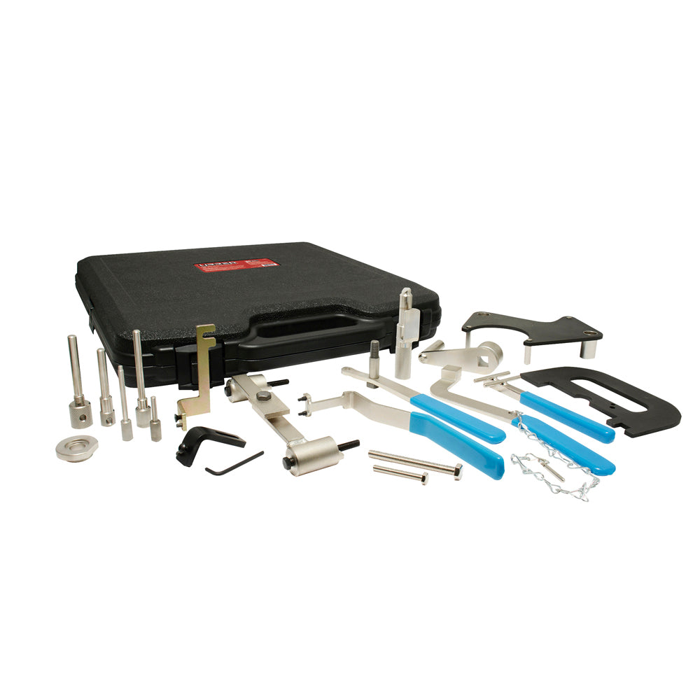 -Incluye seguros y pines para bloquear el árbol de levas, el cigüeñal, la polea de la bomba de inyección y la polea de tensión de motores a gasolina y diesel