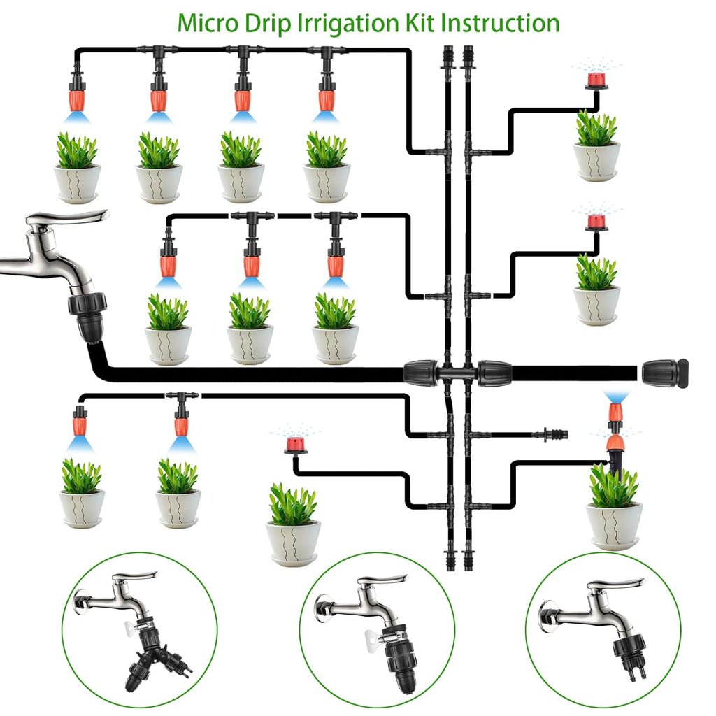 Fácil de montar y usar, es de instalación sencilla sin necesidad de cavar o habilidades de fontanería, simplemente inserta los accesorios y cuentagotas, puedes empezar a regar tus plantas al instante.